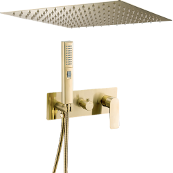 Ducha empotrada cuadrada monomando dorado cepillado a techo