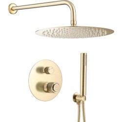 Ducha termostatica empotrada dorado cepillado redonda a...
